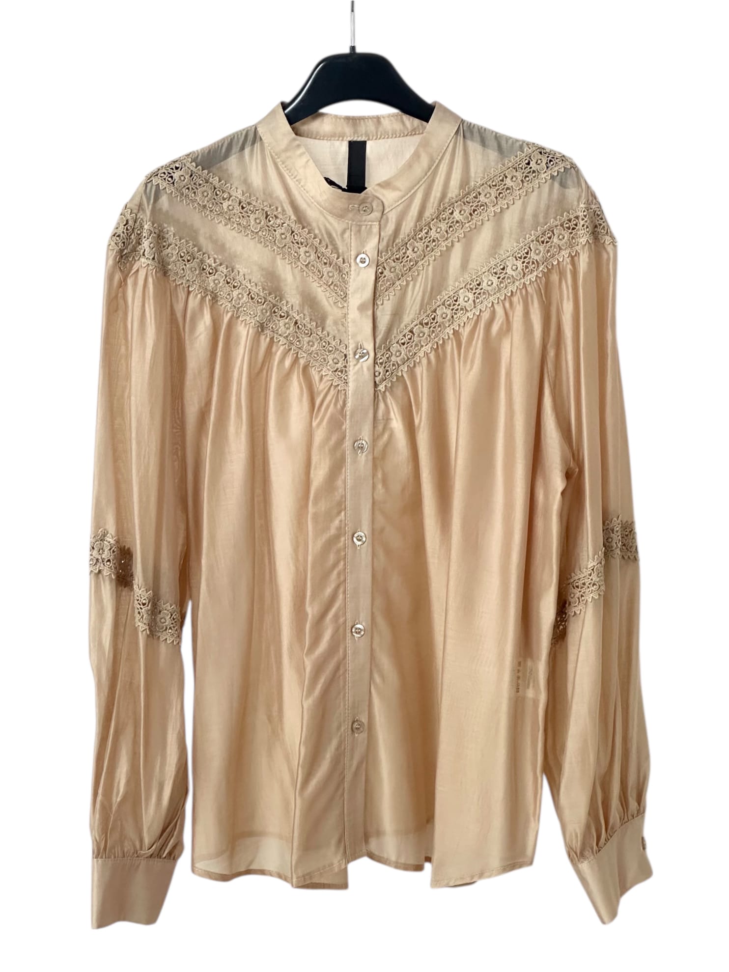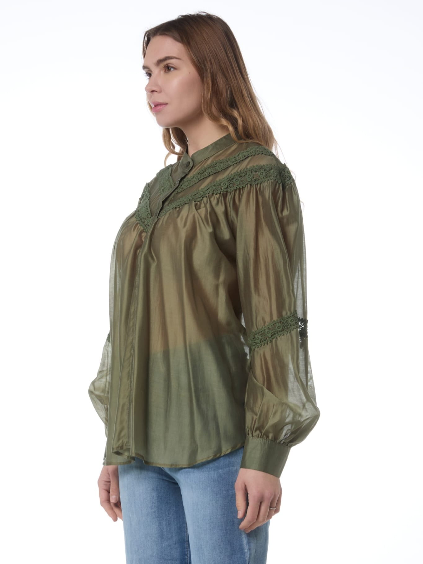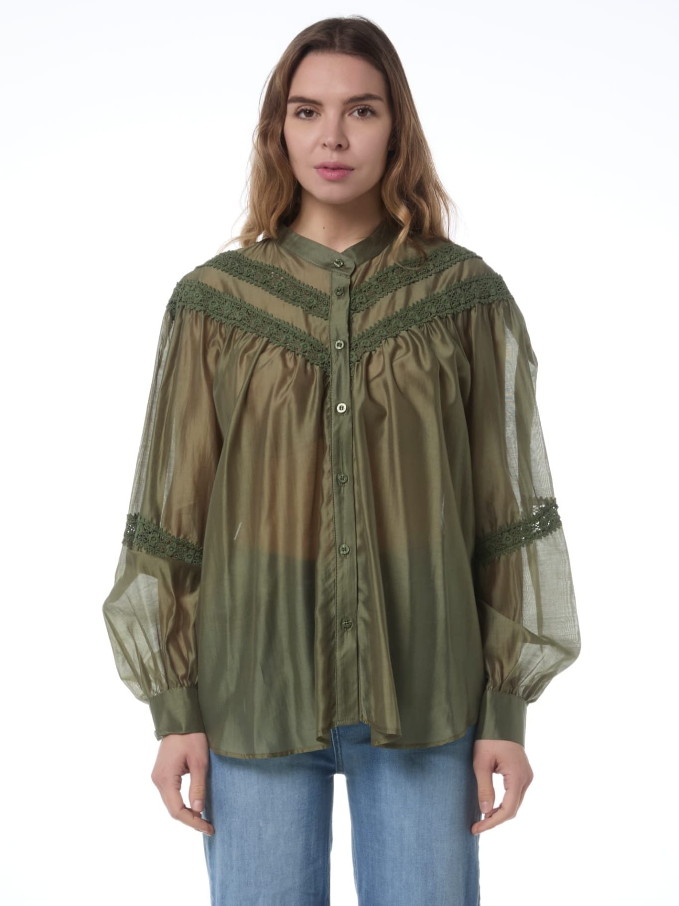 Szeroka, prześwitująca bluzka z delikatnej tkaniny z haftem.