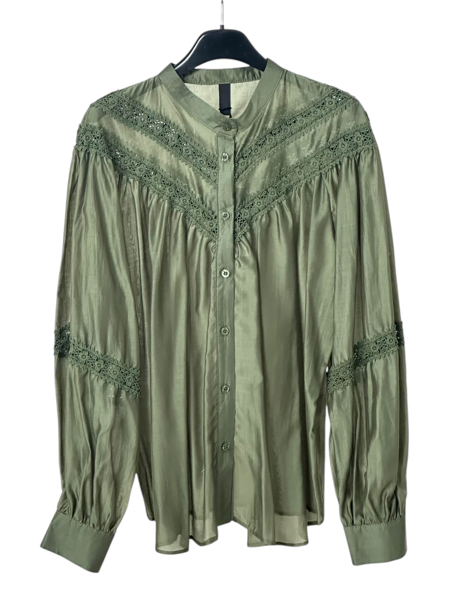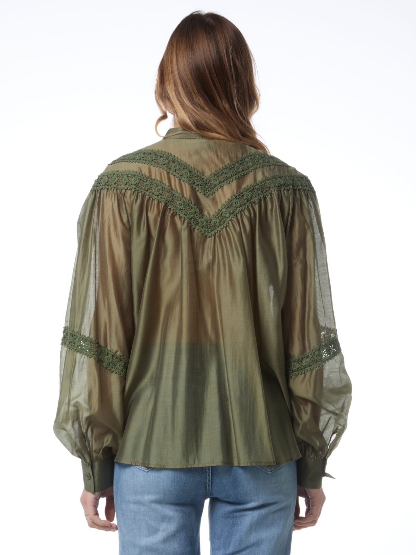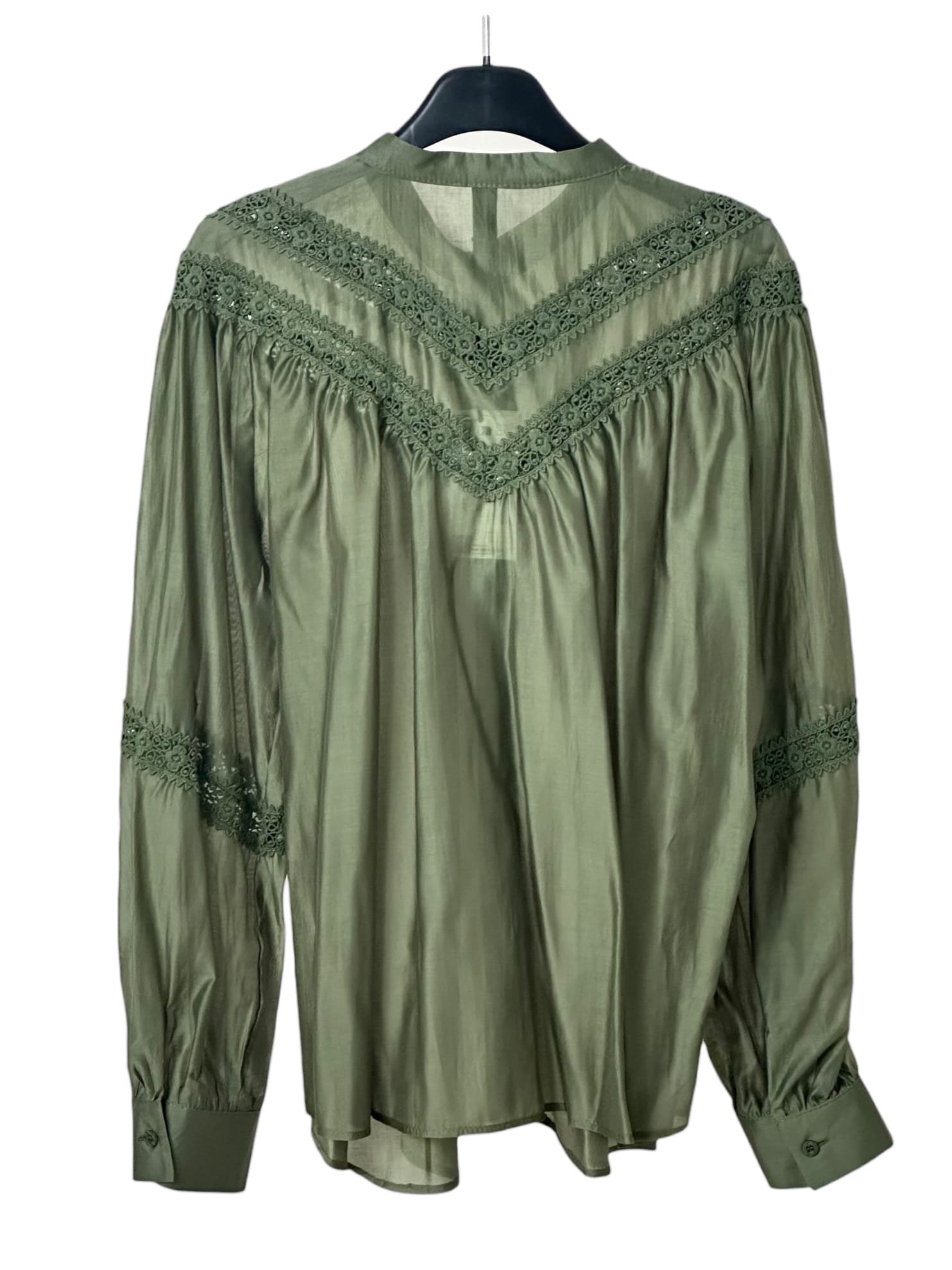 Szeroka, prześwitująca bluzka z delikatnej tkaniny z haftem.