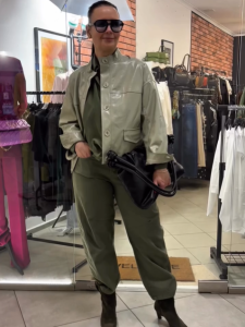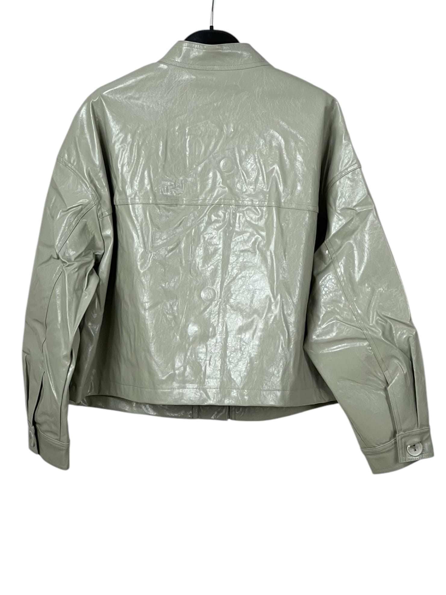Krótka, prosta kurtka w kolorze szałwiowym (jasnym zielonym).