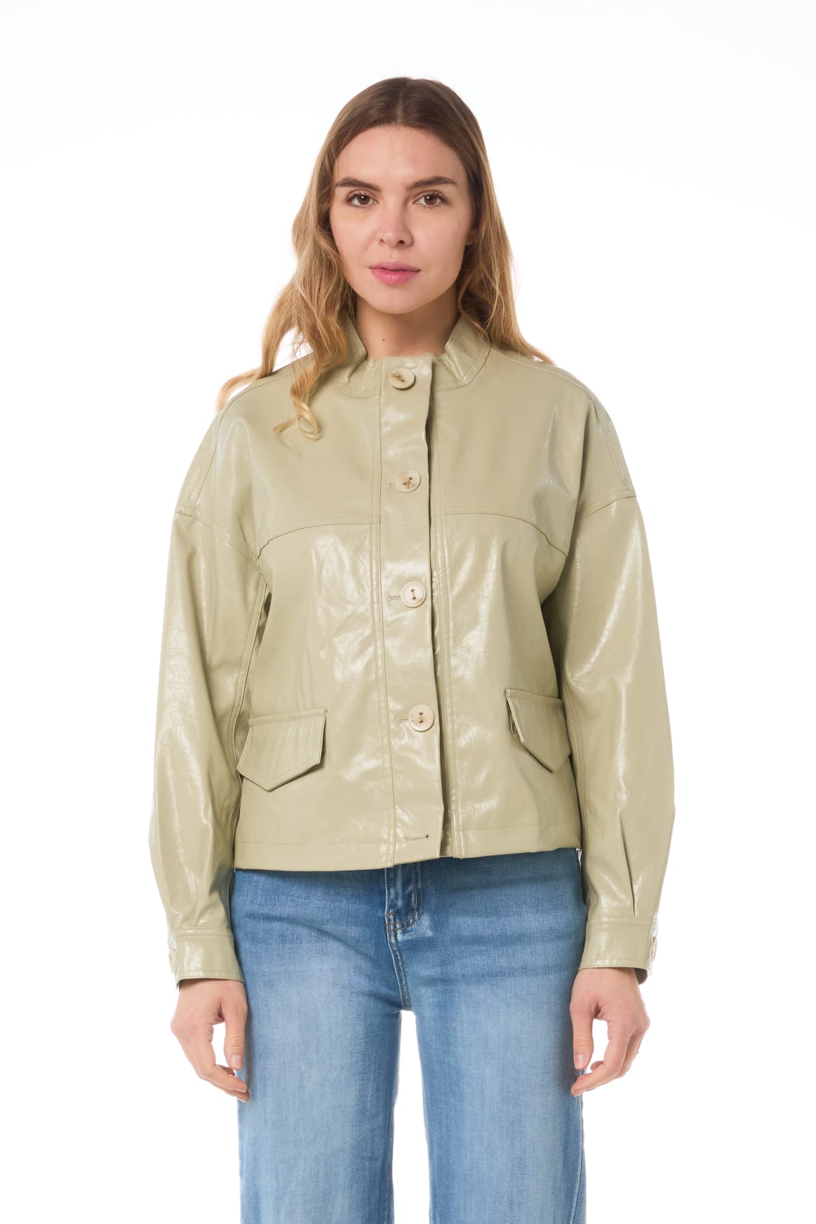 Krótka kurtka ze stójką kolor zielony/szałwia