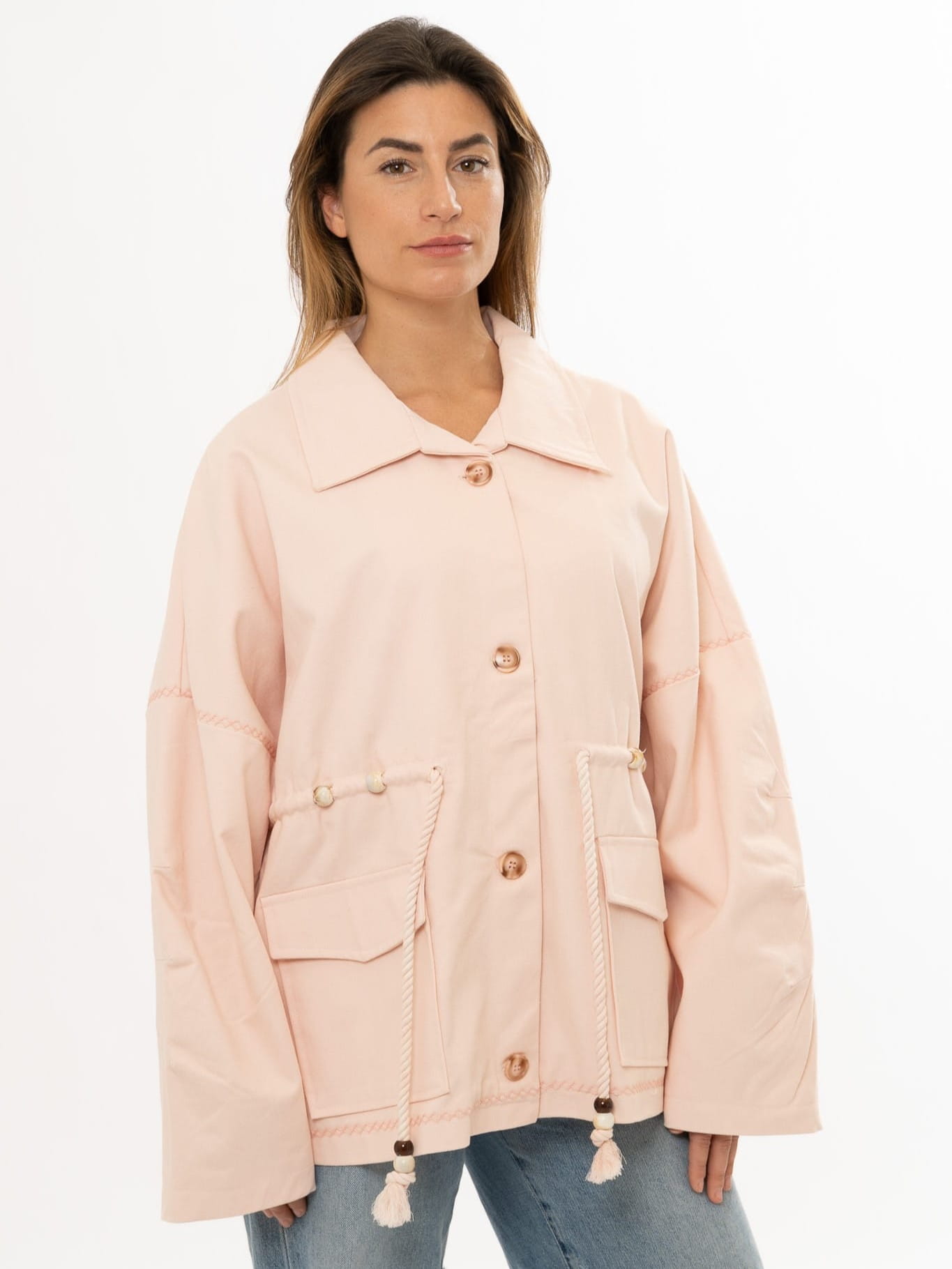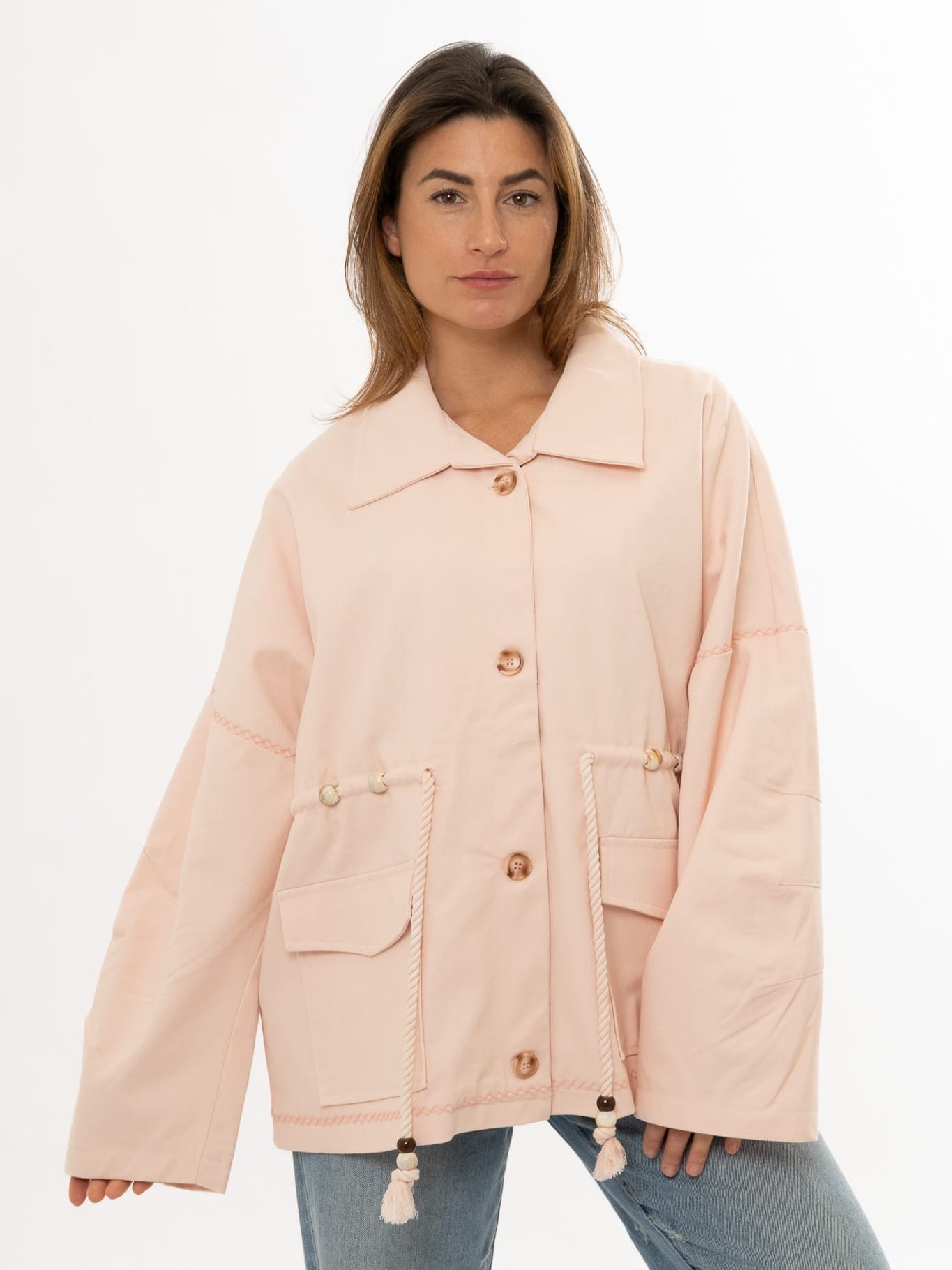 Bawełniana kurtka taliowana. Zapinana na guziki. Troczek w pasie.