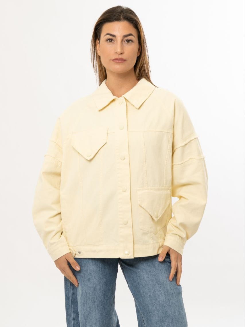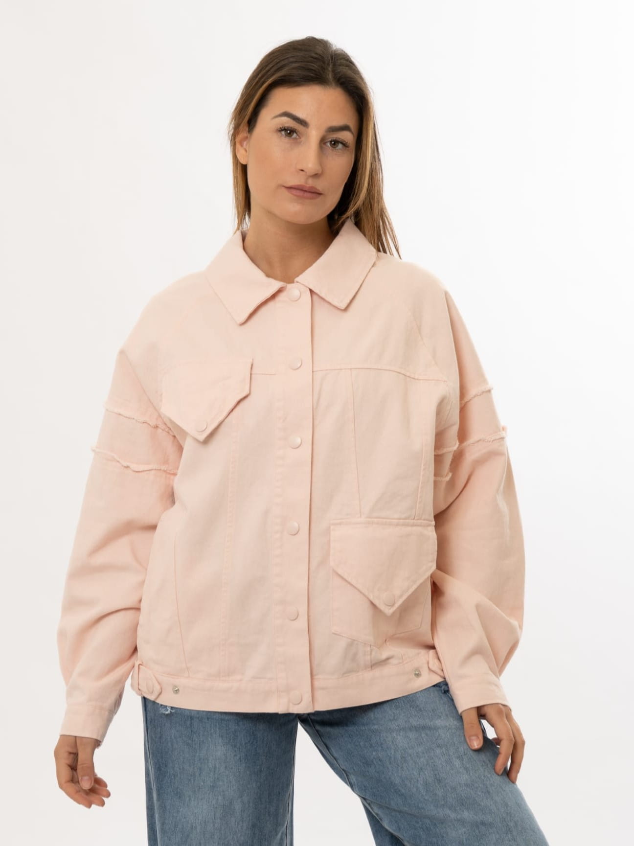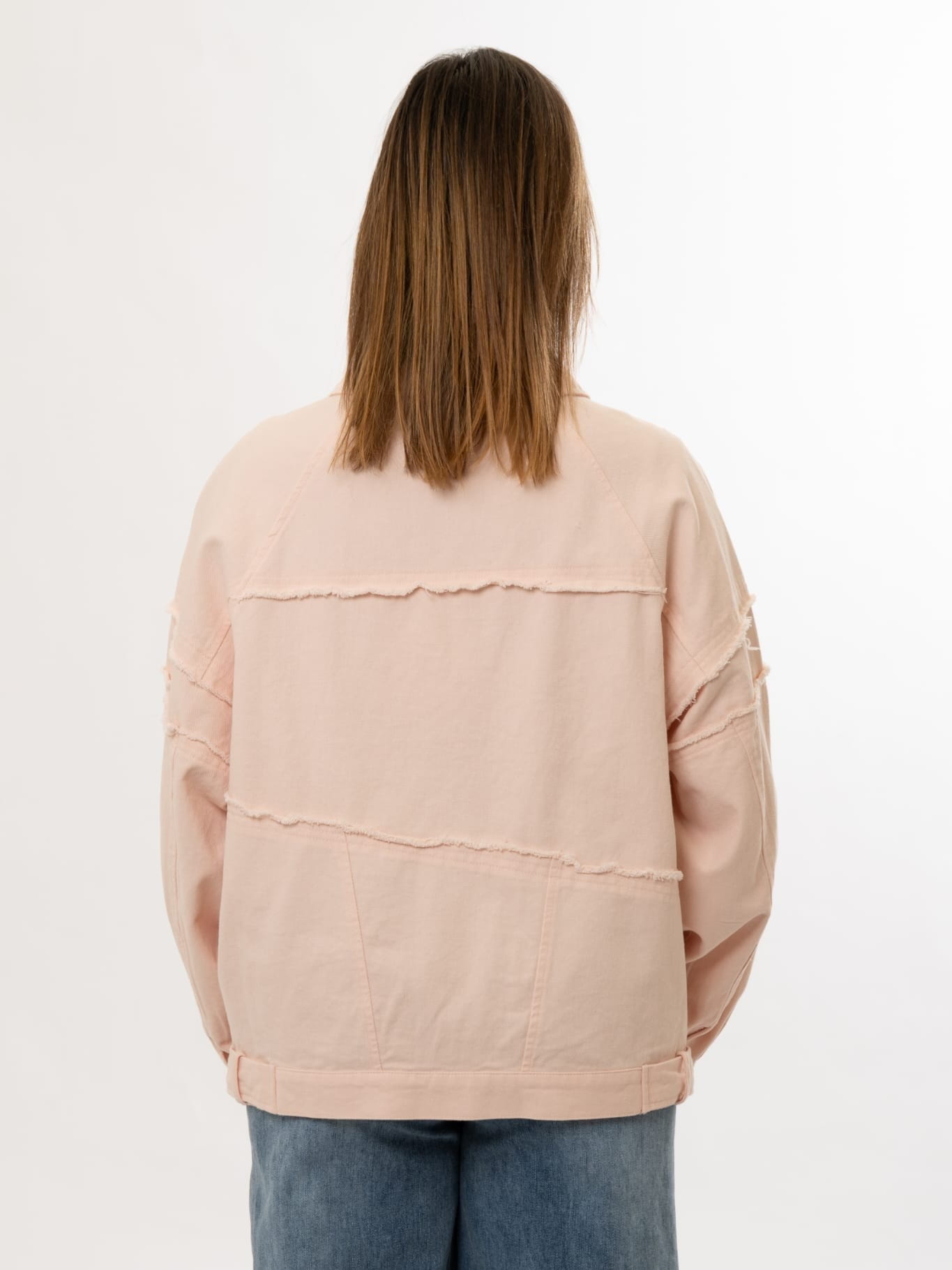 Na dole regulacja szerokości. Surowo wykończone elementy na rękawach i na plecach. Zapinana na napy.