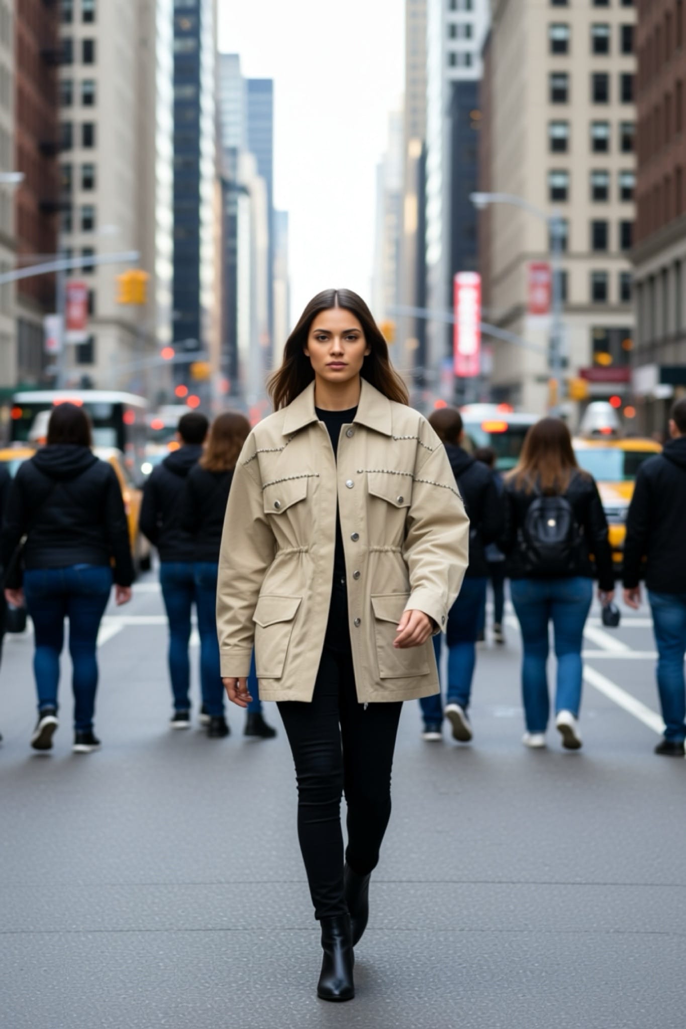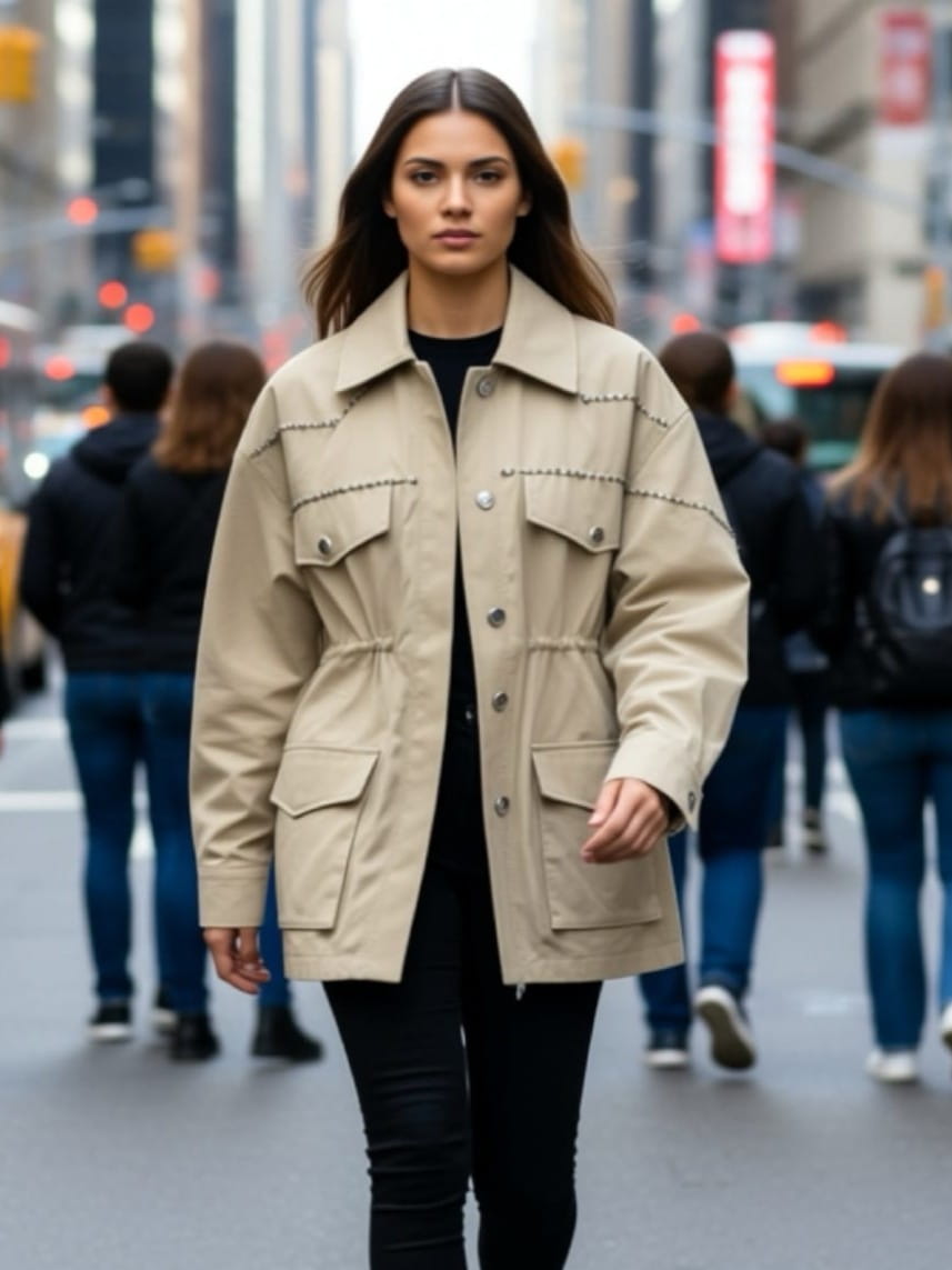 Kurtka prosta ze ściągaczem w pasie kolor beżowy