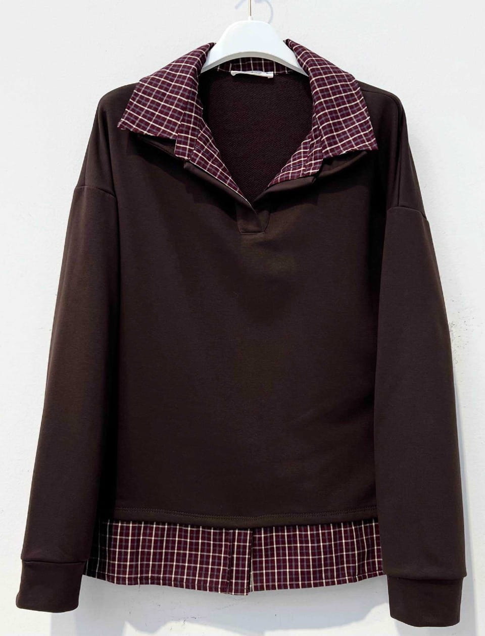 Miho's bluza z kołnierzykiem koszulowym kolor brązowy z bordo