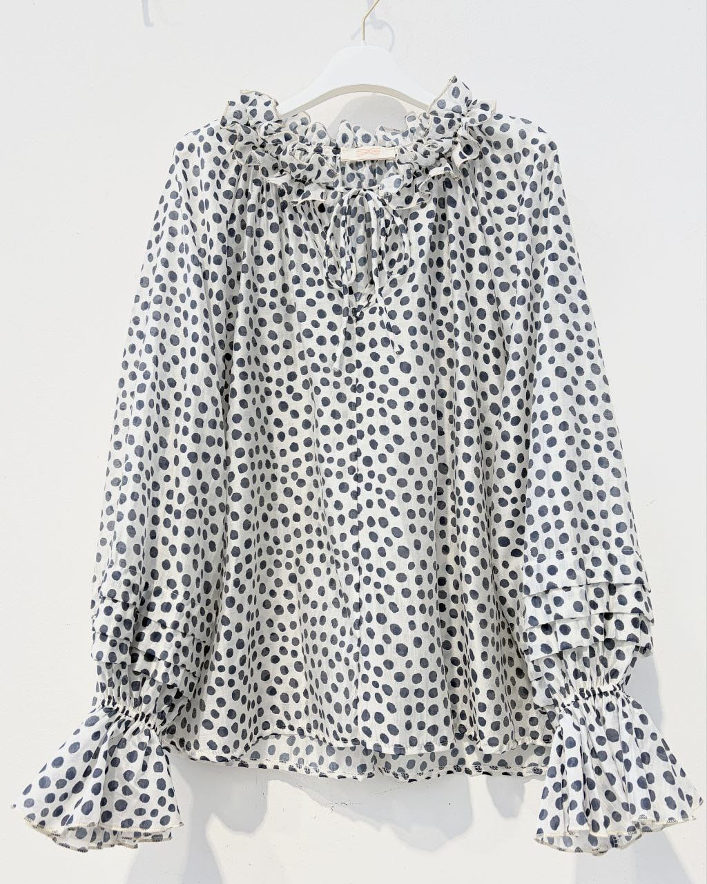 Szeroka bluzka w kropki z falbanami włoskiej marki Miho's