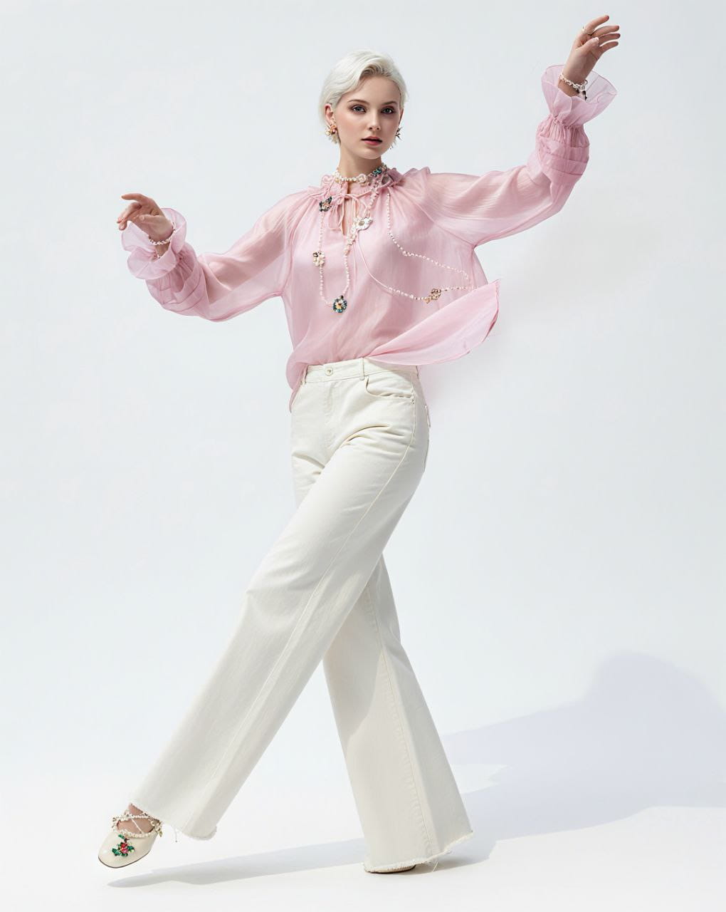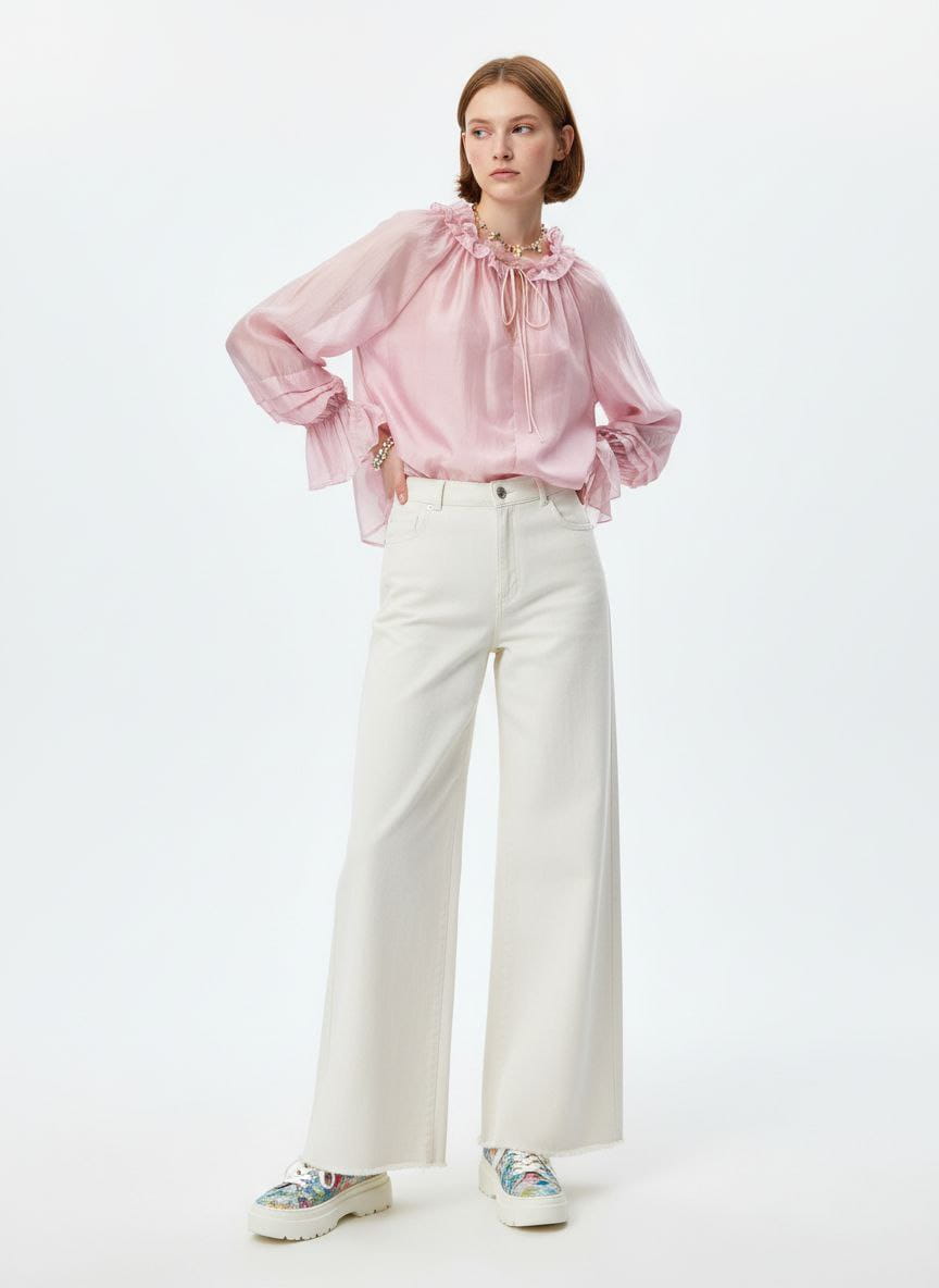 Mihos szeroka bluzka z falbanami kolor biały