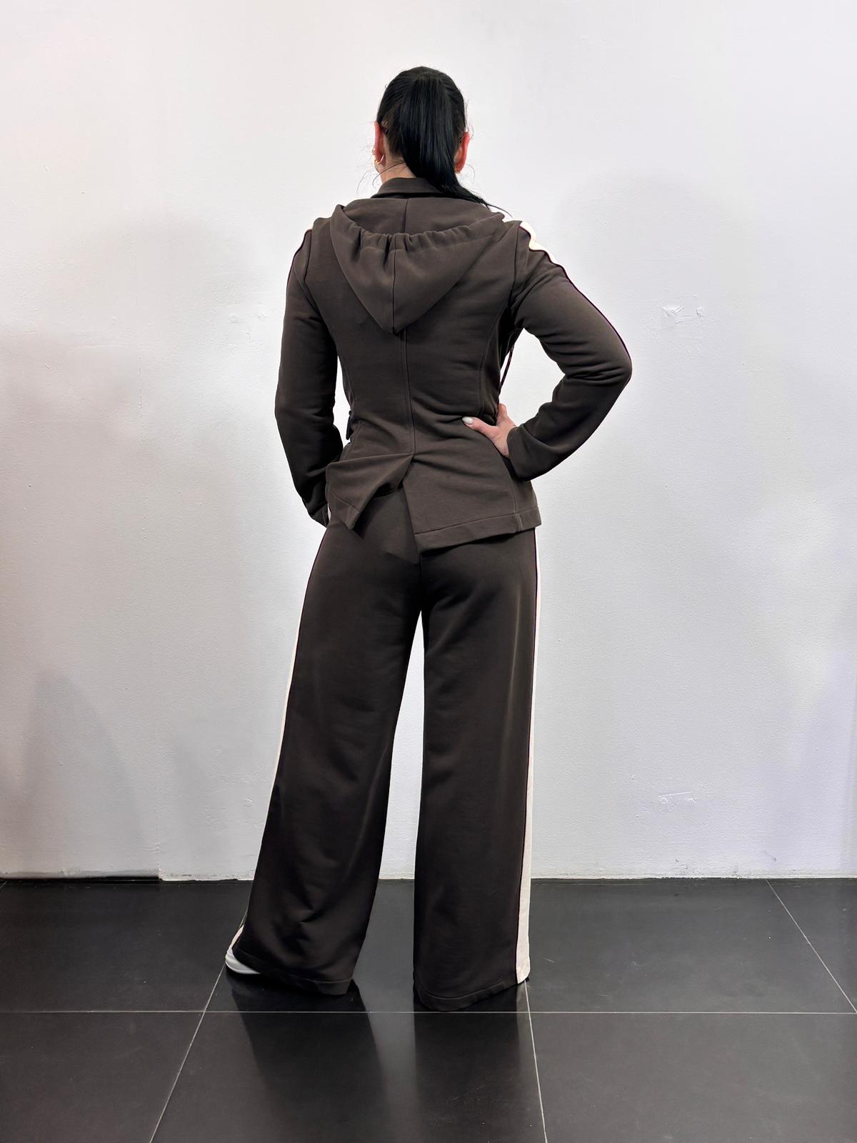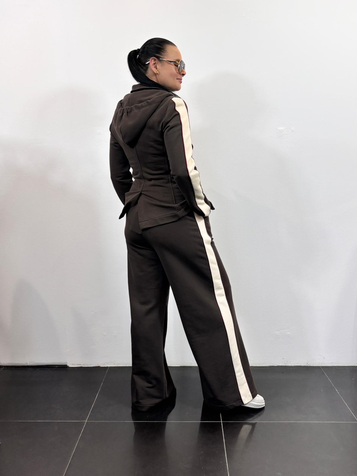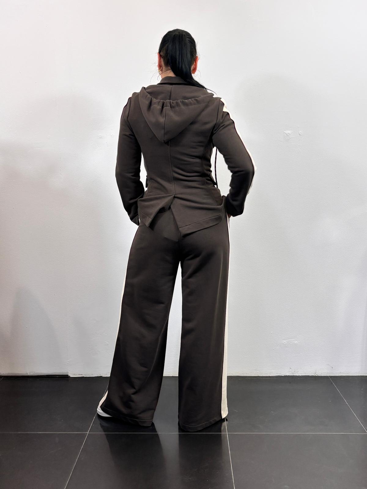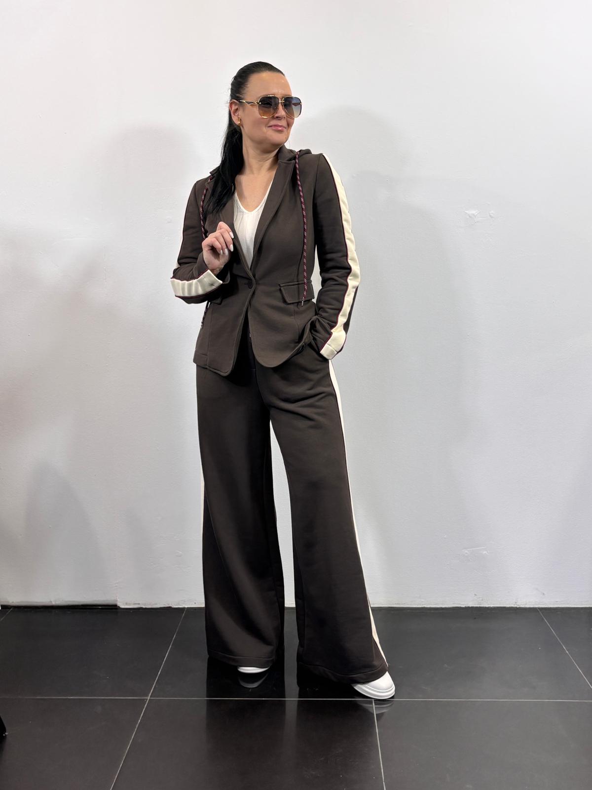 Motel dres z lampasami z marynarką z kapturem i szerokimi spodniami kolor brązowy