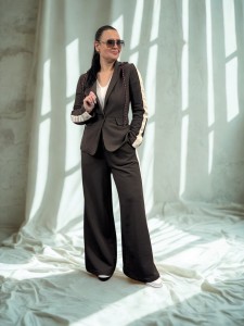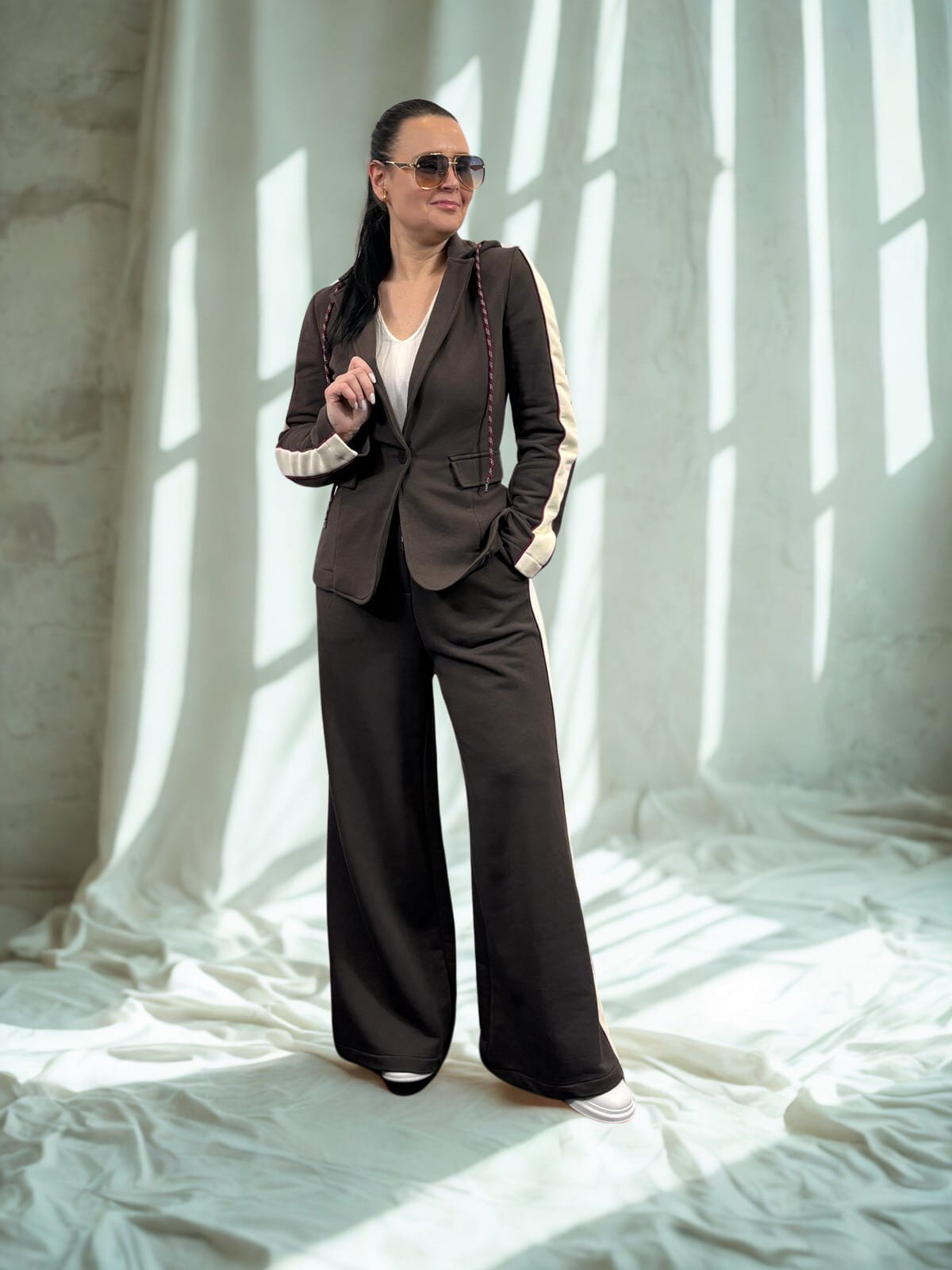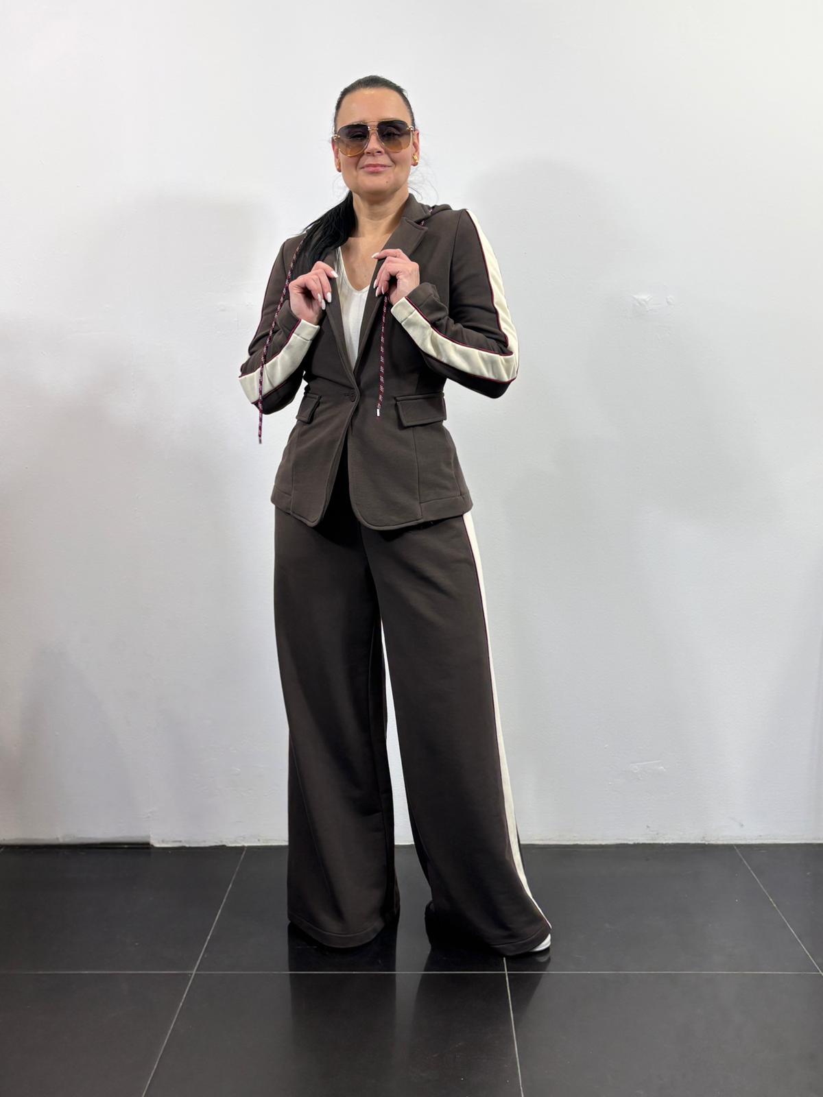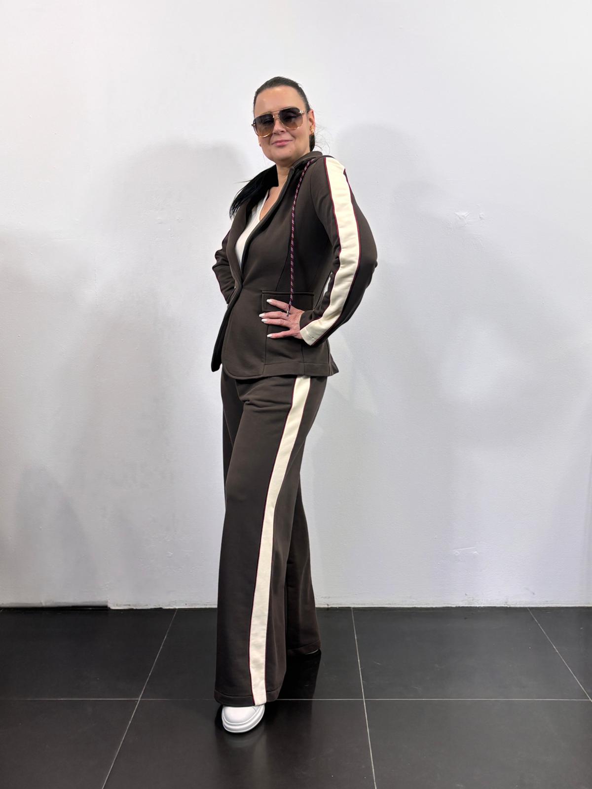 Motel dres z lampasami z marynarką z kapturem i szerokimi spodniami kolor brązowy