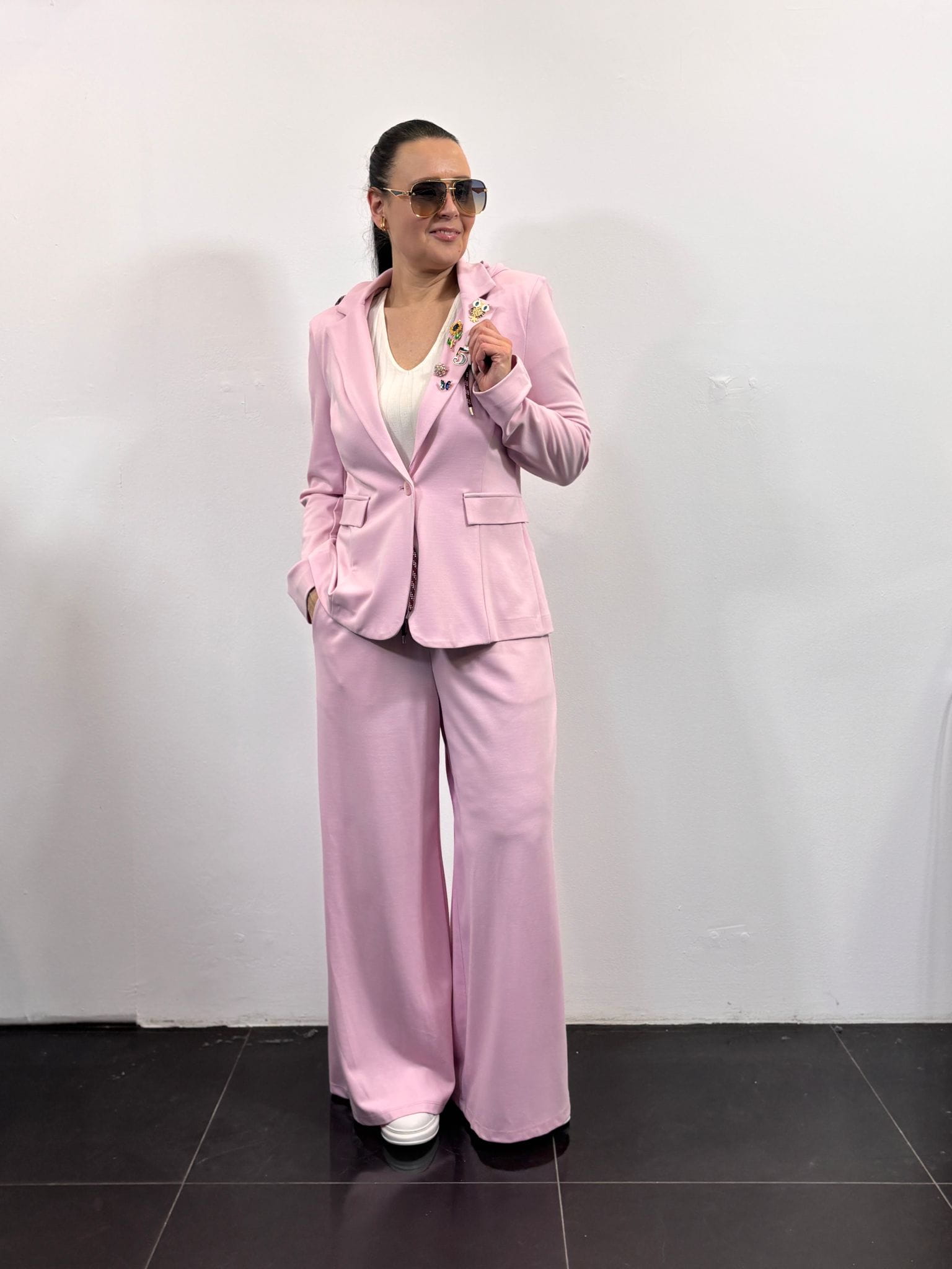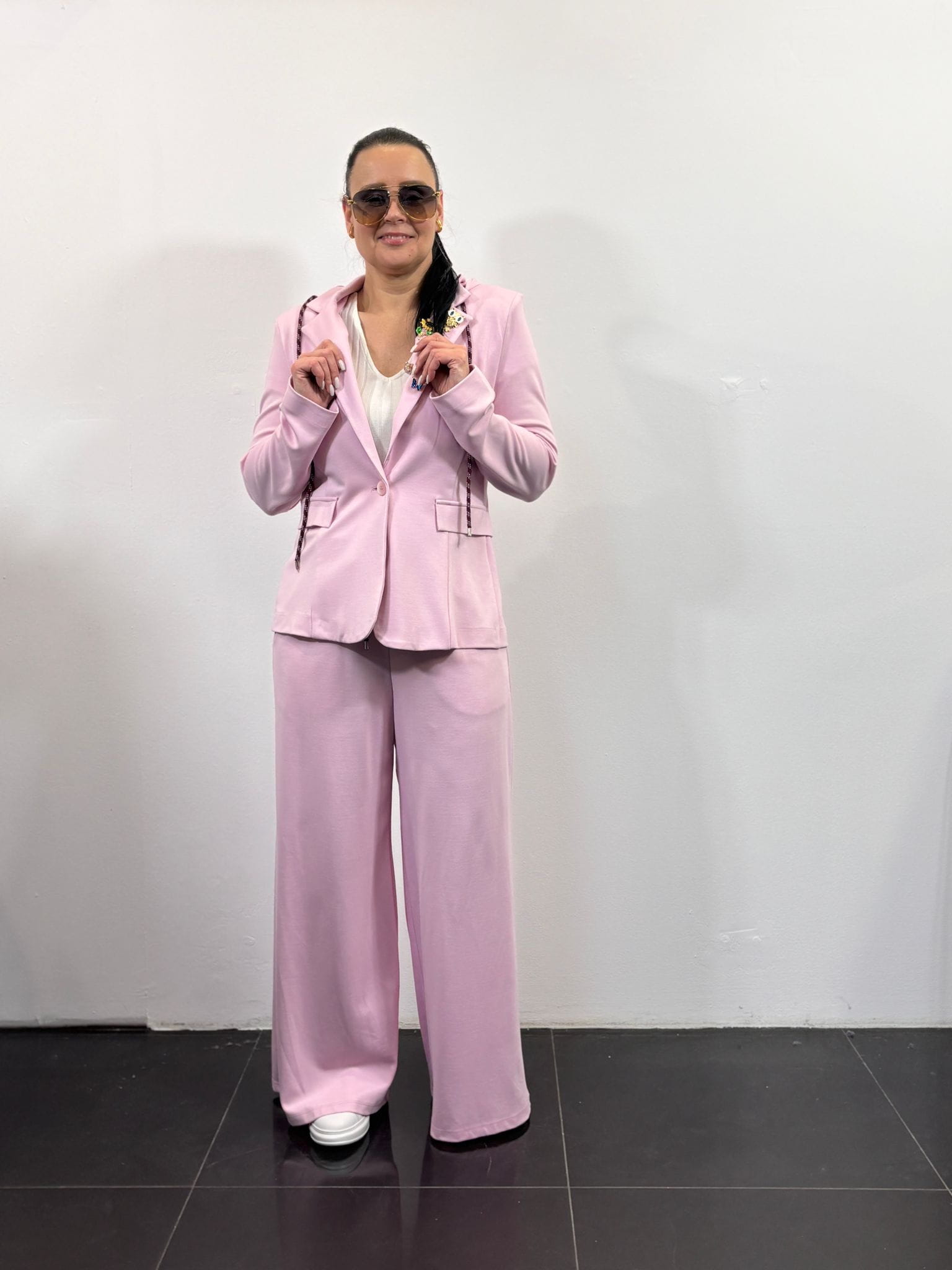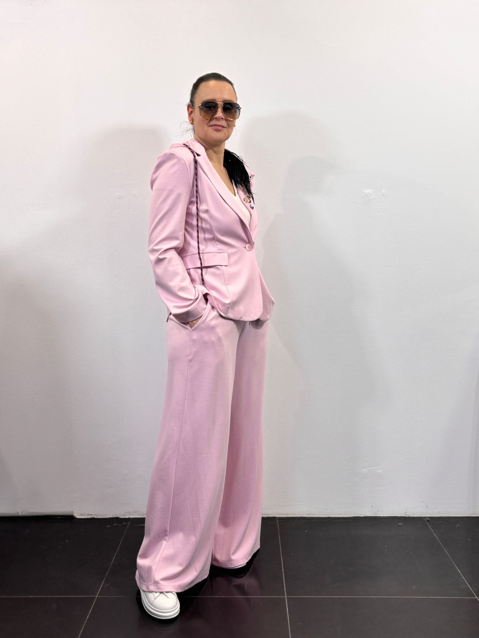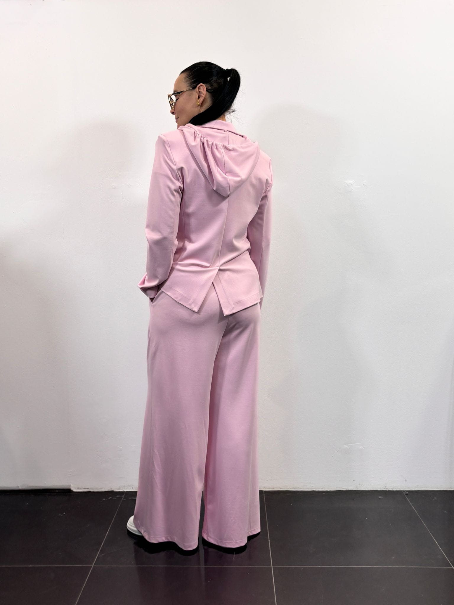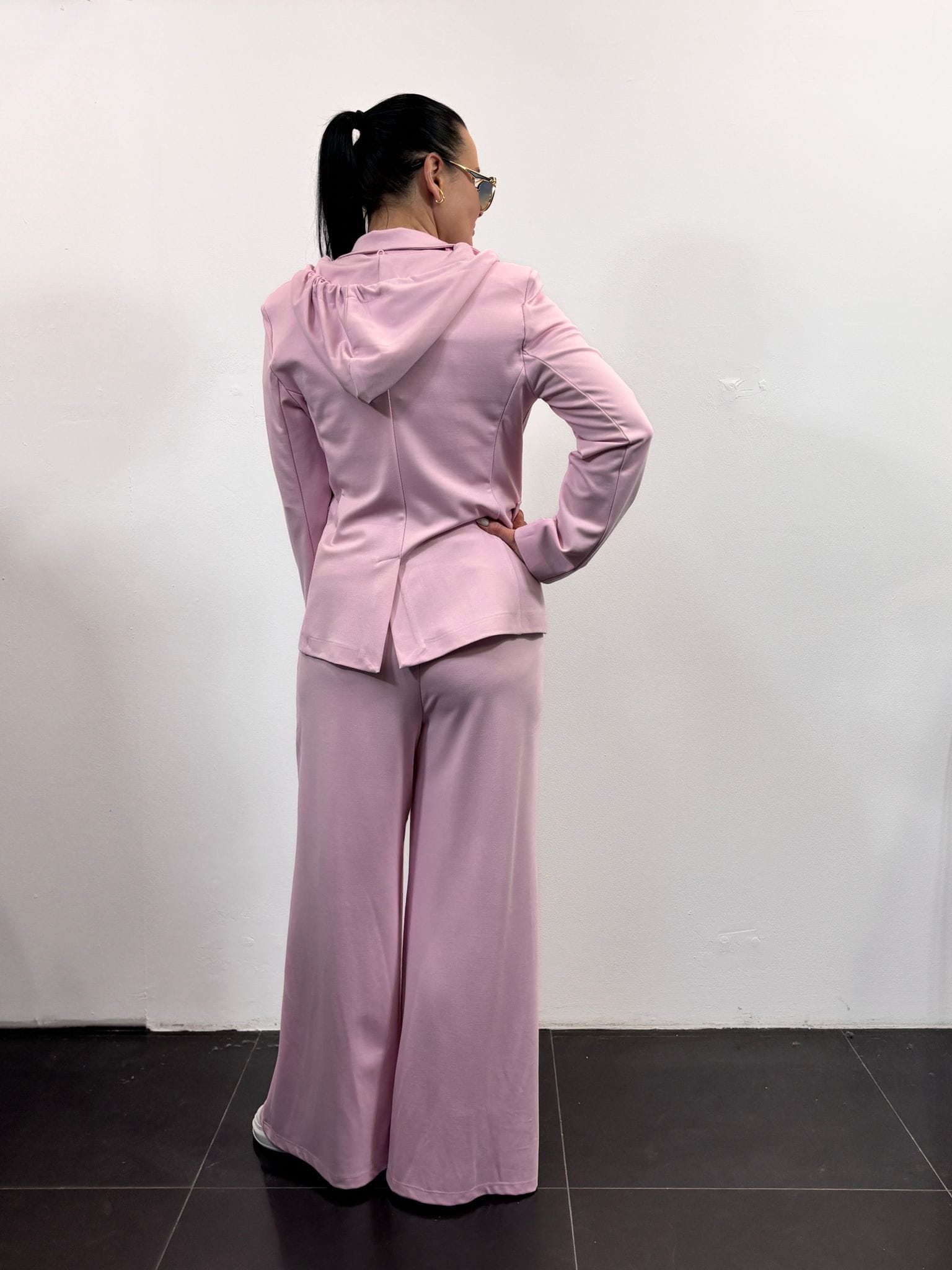Motel dres z marynarką z kapturem i szerokimi spodniami kolor rożowy