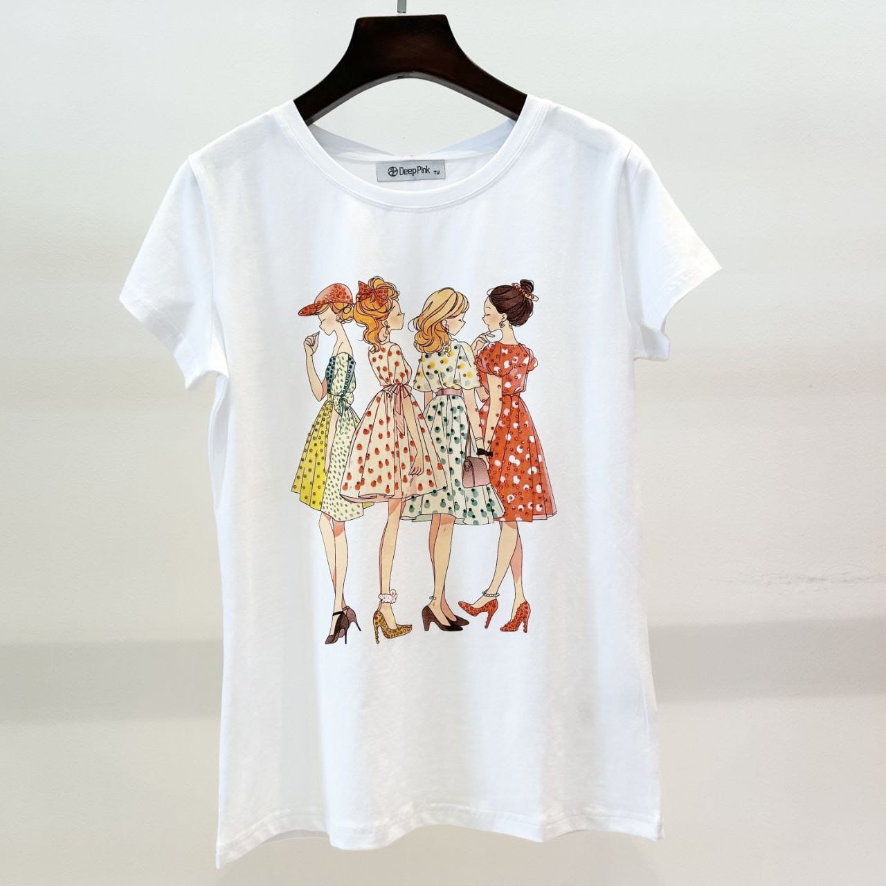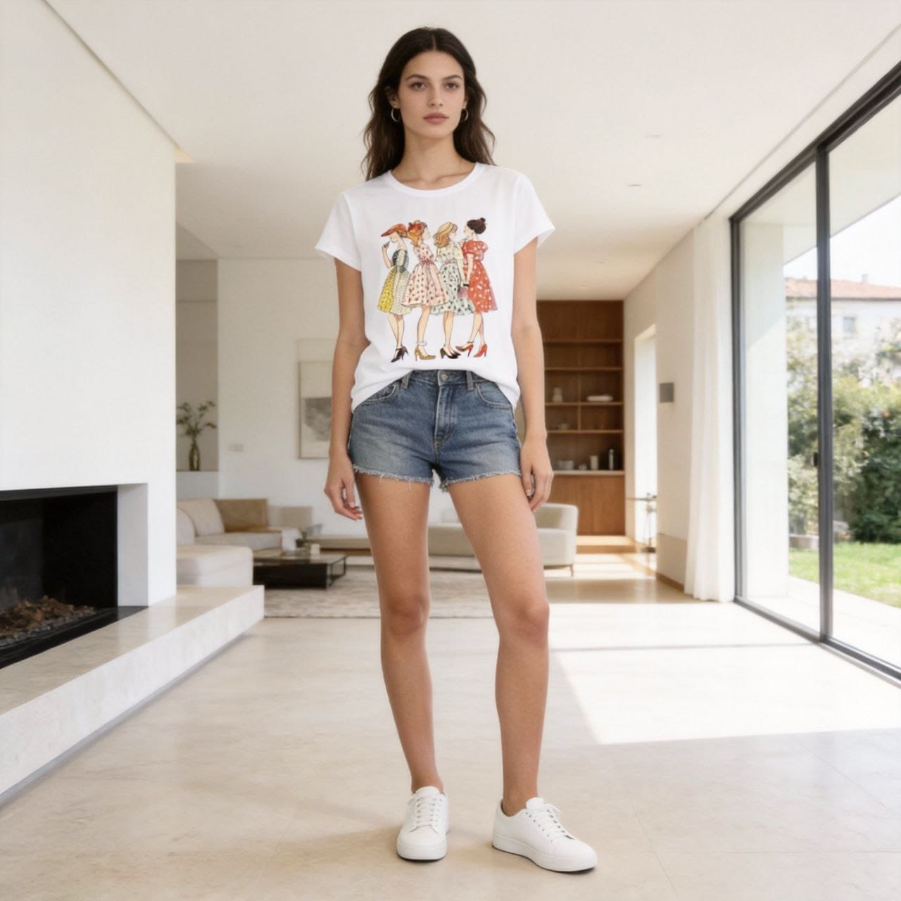 T-shirt z wysokiej jakości bawełny z nadrukiem i kryształkami.