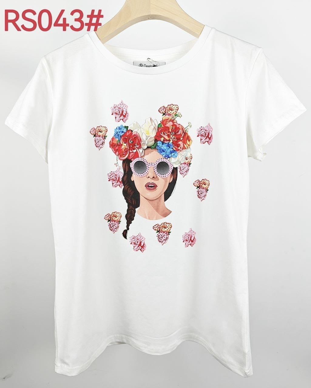 T-shirt z wysokiej jakości bawełny z nadrukiem i kryształkami.